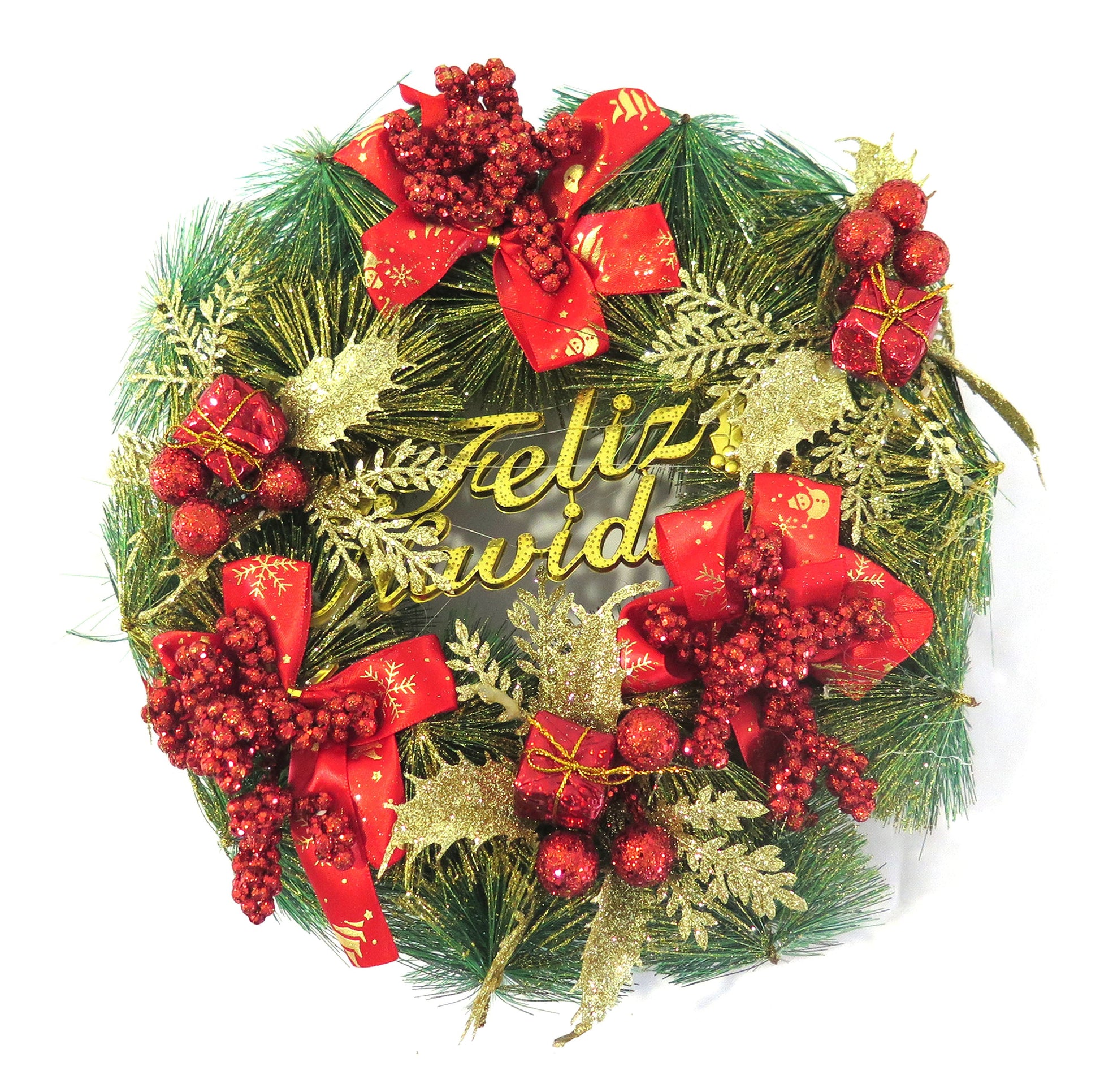 CORONA NAVIDEÑA FELIZ NAVIDAD C/ADORNOS 30CM