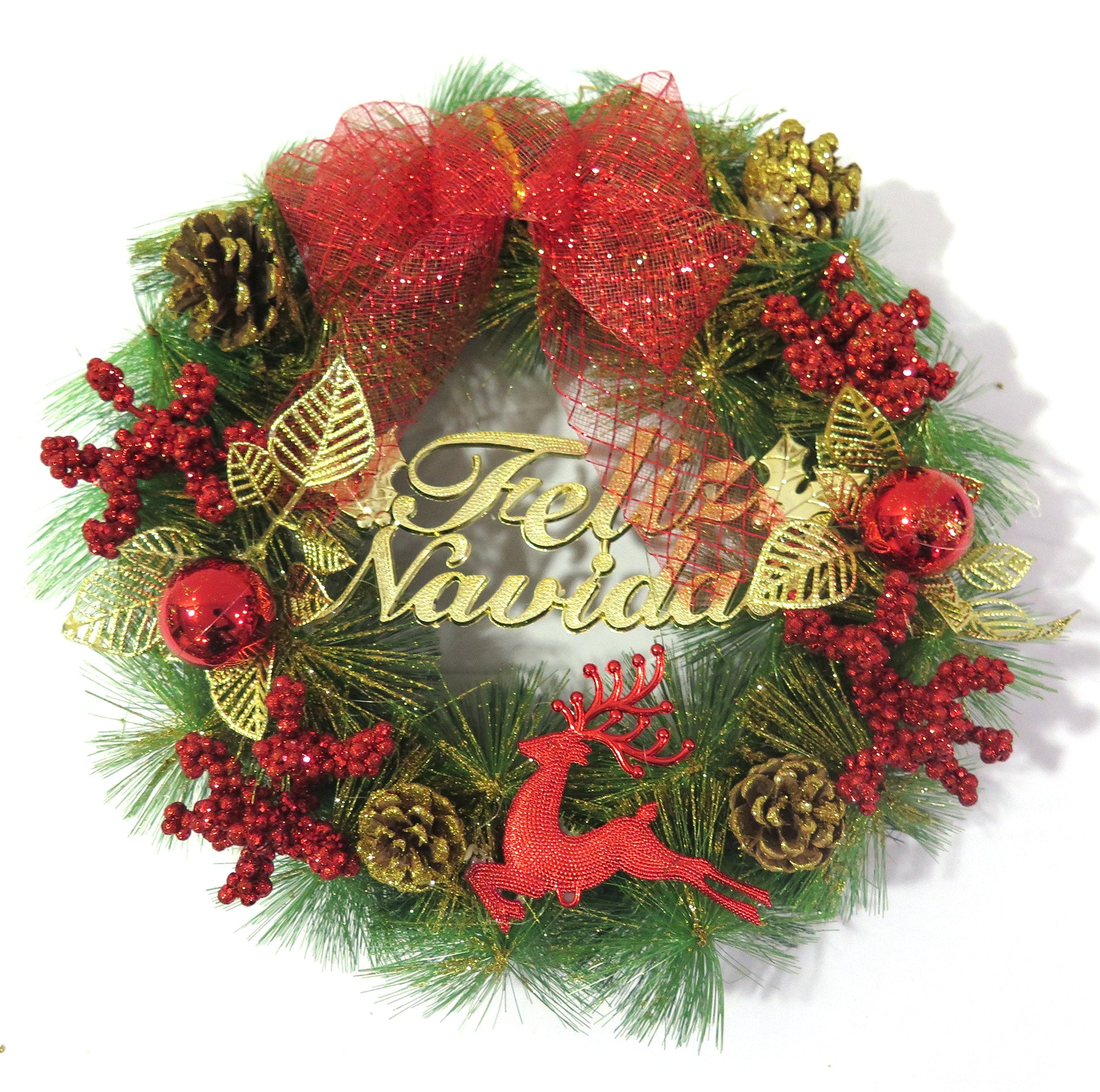 CORONA NAVIDEÑA FELIZ NAVIDAD DORADA 30CM