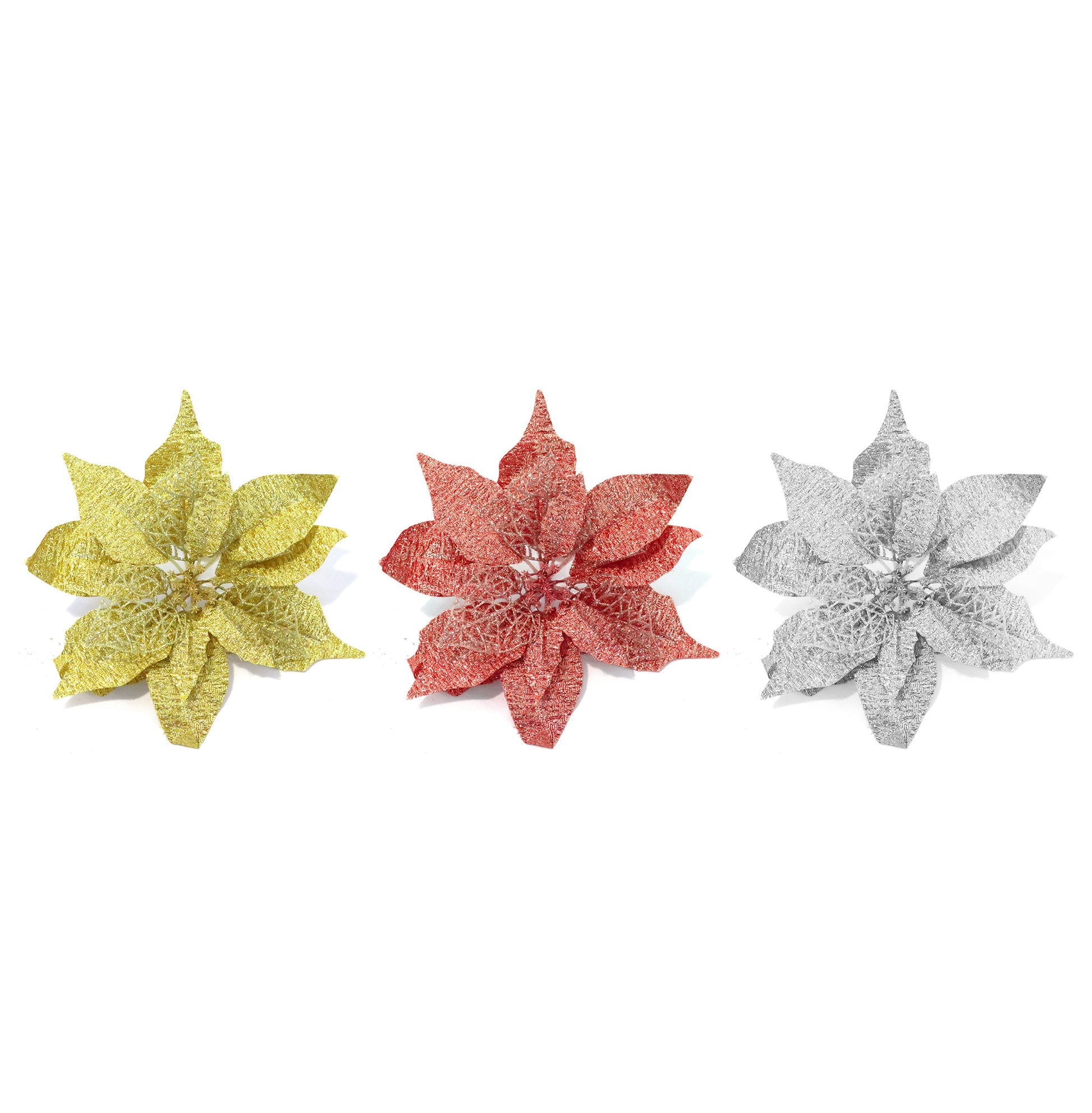 FLOR DE NOCHEBUENA C/BRILLANTINA 20CM MORADO-ROJO-PLATA-ORO-LILA